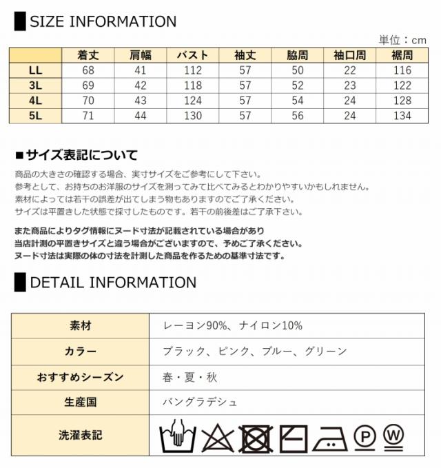 5L:着丈71 肩幅44 バスト130 袖丈57 脇周56 袖口周24 裾周134