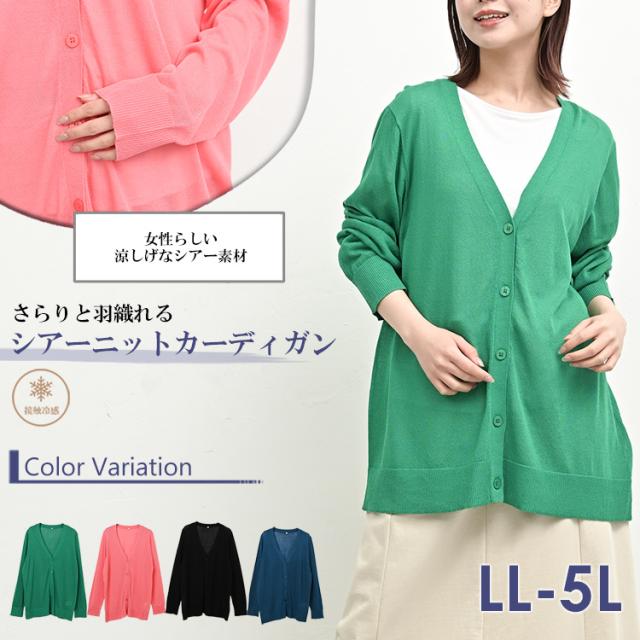 【メール便対応】さらりと羽織れるシアーニットカーディガン。XXXXL 2XL 3XL 4XL 長袖トップス 30代 40代 50代 春新作 春服 夏服 秋服 春物 夏物 秋物 2024 羽織り 接触冷感 オフィス カジュアル おしゃれ きれいめ ゆったりサイズ ぽっちゃり女子 プラスサイズ