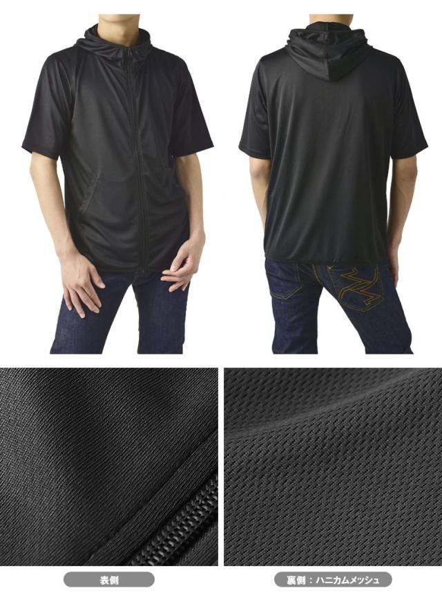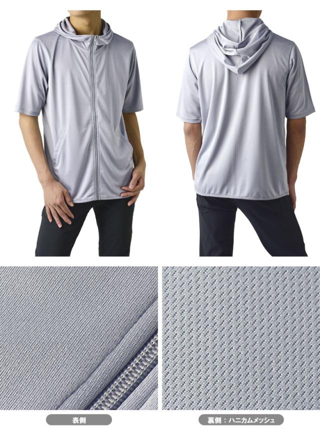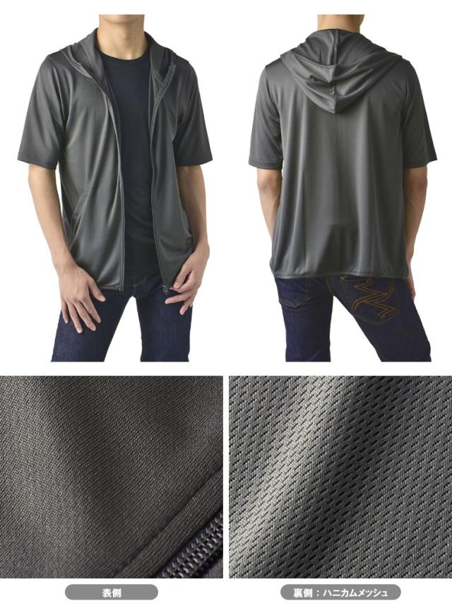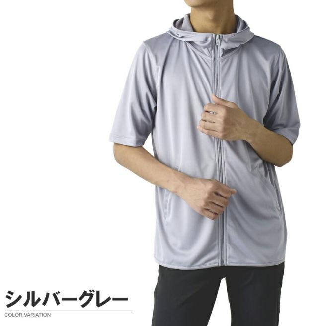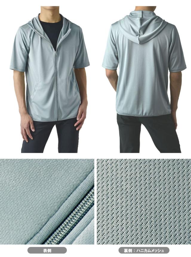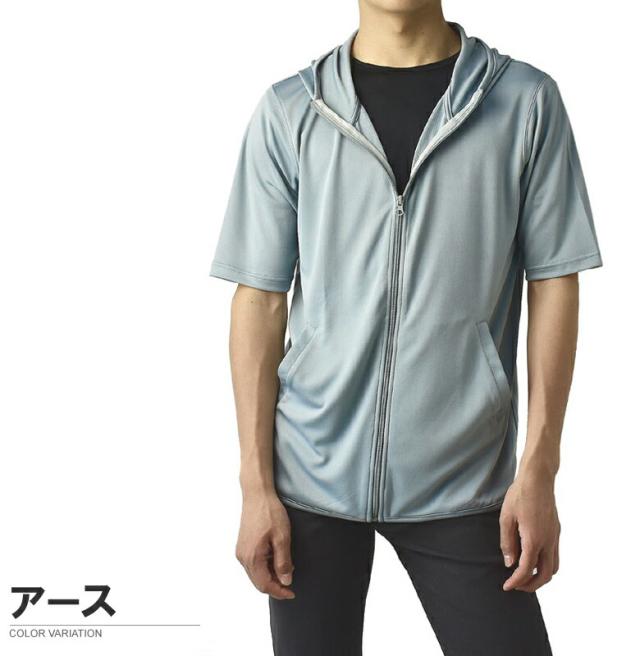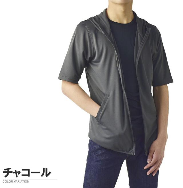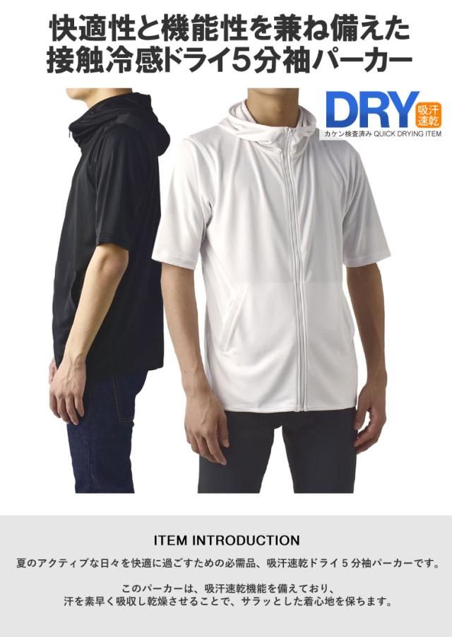 パーカー 5分袖 接触冷感 吸汗速乾 ドライ DRY メンズ フード付き UVカット 機能検査済 フルジップ 夏【B0L】【パケ1】