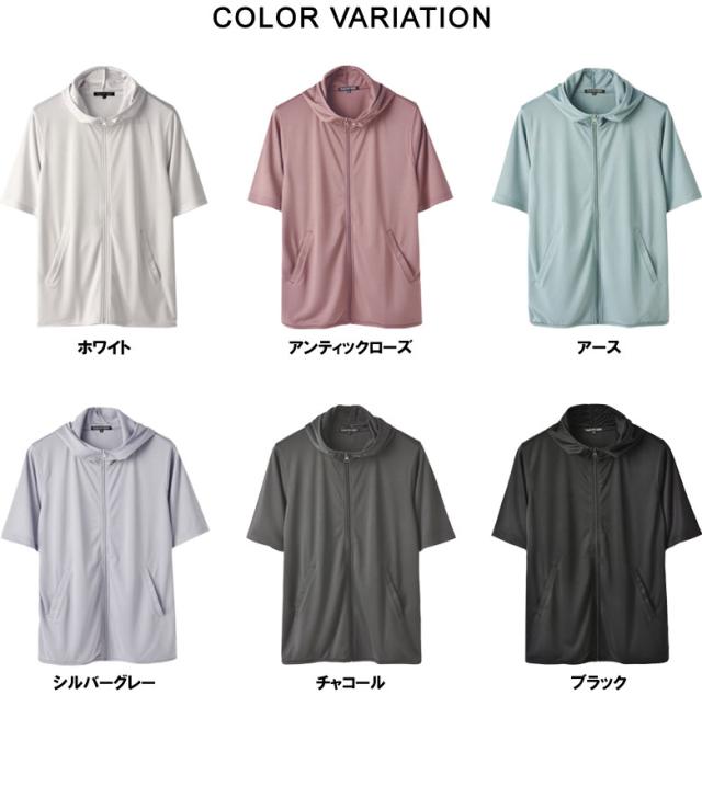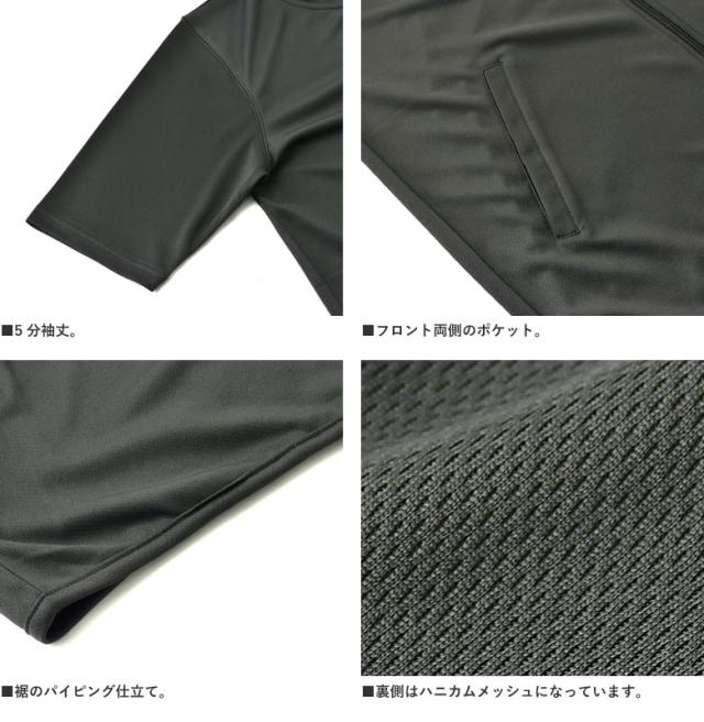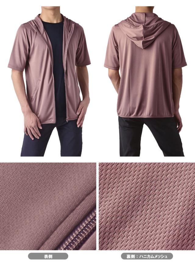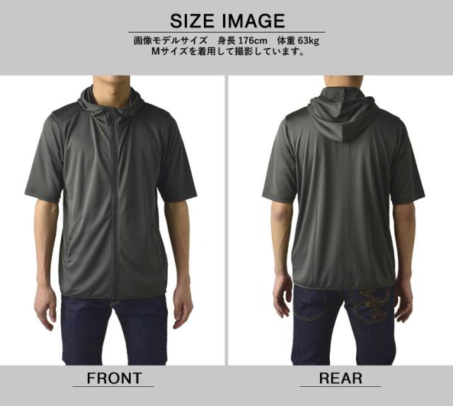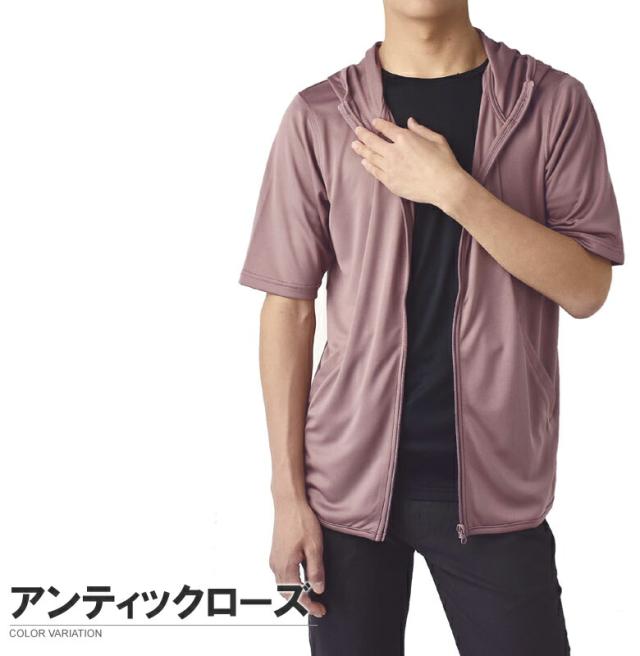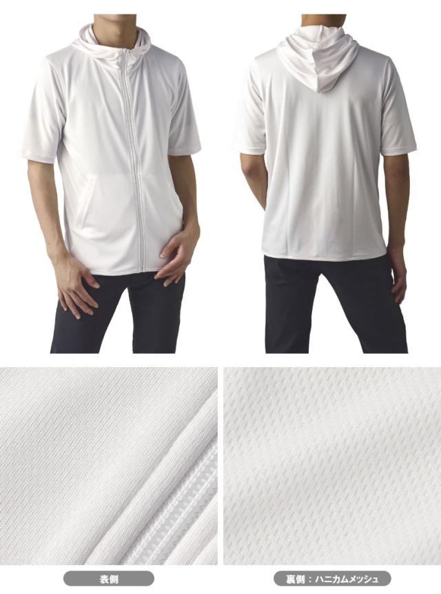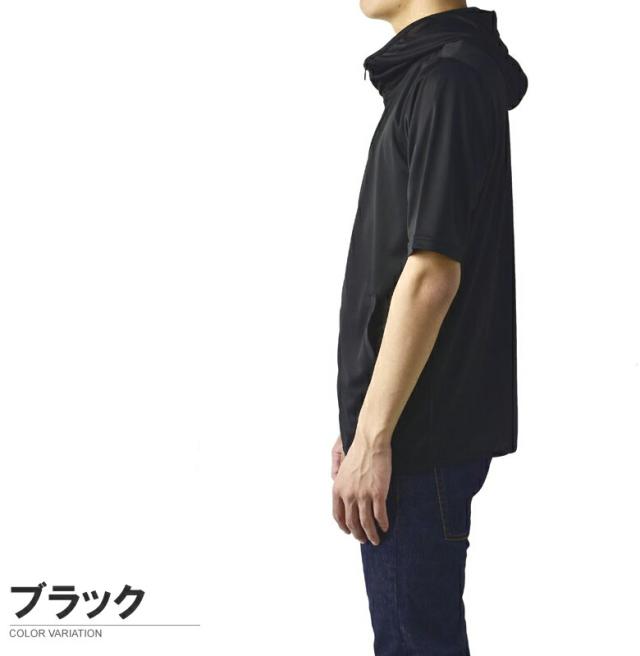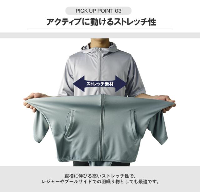 パーカー 5分袖 接触冷感 吸汗速乾 ドライ DRY メンズ フード付き UVカット 機能検査済 フルジップ 夏【B0L】【パケ1】