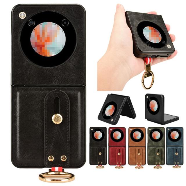 Nubia Flip 5G ケース 耐衝撃 カバー PUレザー+プラスチック 持ち手 ベルト 落下防止ベルト ストラップ付き リング付き 可愛い/かわいい エレガント レディース スマホベルト 片手操作 取っ手 シンプル ヌビア フリップ 5G 保護ケース アンドロイド おすすめ おしゃれ