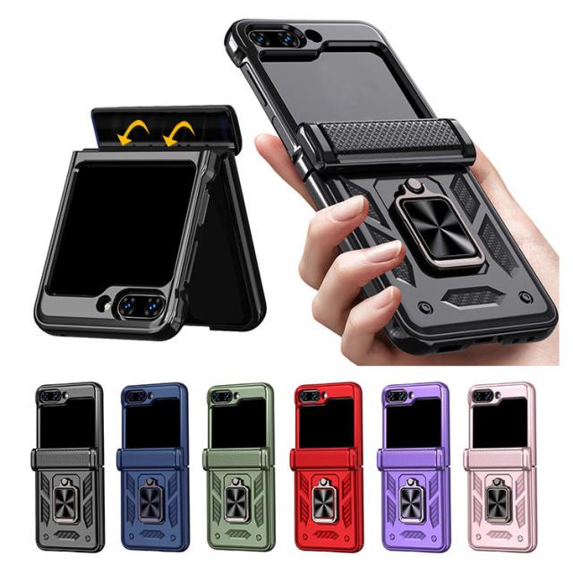 Galaxy Z Flip6 ケース 耐衝撃 カバー 折りたたみ型 一体型リング付き マグネット式車載ホルダー対応 2重構造 スタンド機能 シンプル Samsung サムスン ギャラクシー Z フリップ6 保護ケース アンドロイド おすすめ おしゃれ スマートフォン/スマフォ/スマホケース