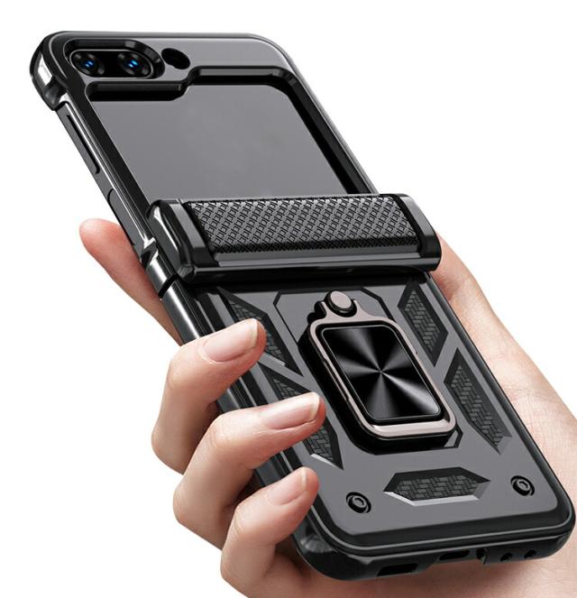 片手持ちに便利なリング付き 耐衝撃ケース TPU + プラスチック サムスン ギャラクシー Z フリップ 6 衝撃吸収 スマホケース スマホカバー ハイブリッド おすすめ
