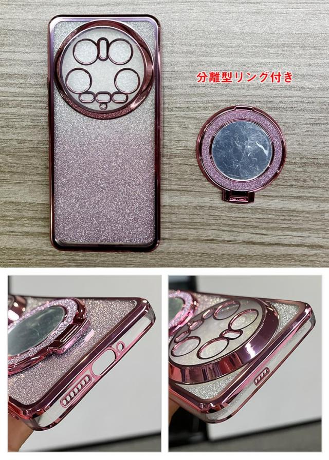 Xiaomi 14 Ultra 耐衝撃 カバー 分離型スマホリング付き ミラー付き スタンド機能 Qi充電 ワイヤレス充電 対応 きらきら かわいい TPU ソフトケース グリッター グラデーション 小米 シャオミ 14 ウルトラ シャオミー おすすめ