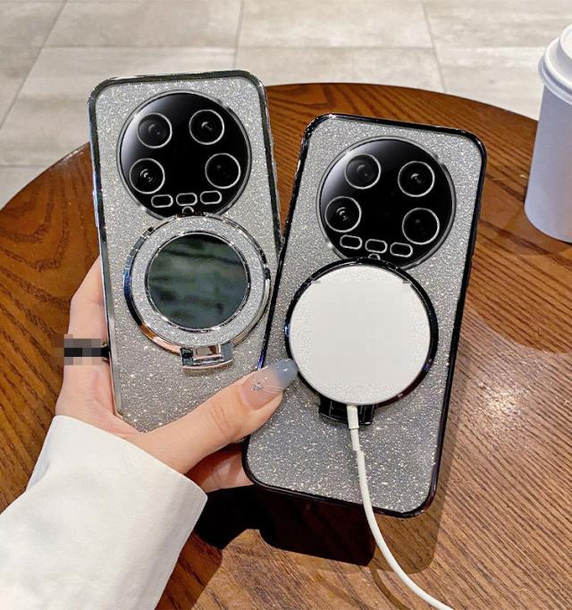 Xiaomi 14 Ultra ケース 耐衝撃 カバー 分離型スマホリング付き ミラー付き スタンド機能 Qi充電 ワイヤレス充電 対応 きらきら かわいい TPU ソフトケース グリッター グラデーション 小米 シャオミ 14 ウルトラ シャオミー おすすめ