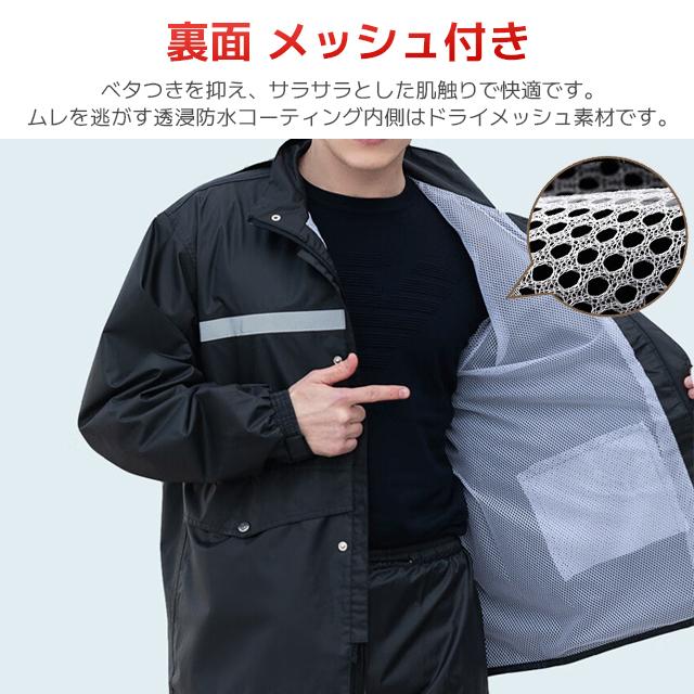 - しっかりした生地でさらに収納袋や反射テープ付き、上下セットでこの価格たいへん満足しています。