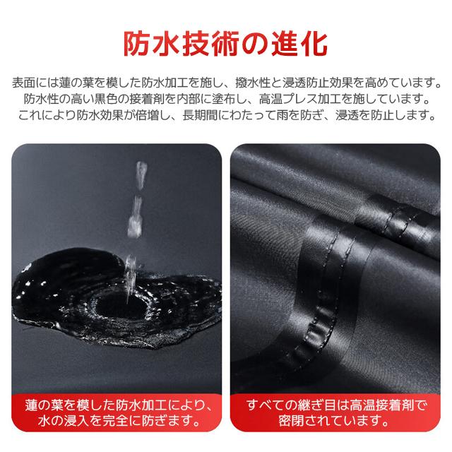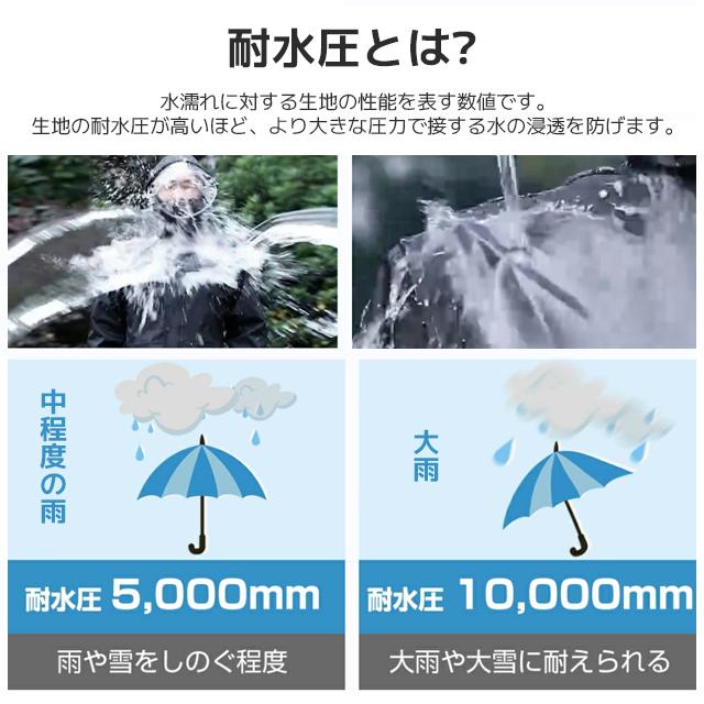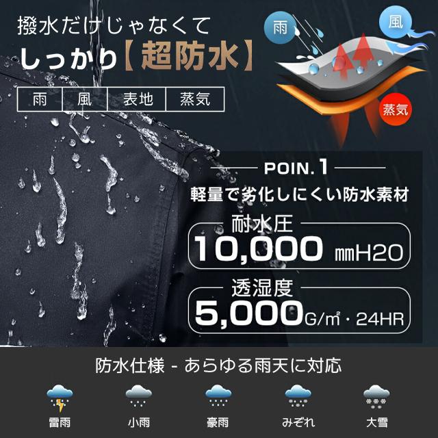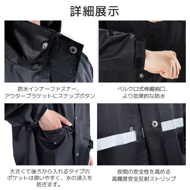 | 多層防水と環境に優しい素材 | ◆防水性が高く、丈夫で破れにくく、耐久性に優れています。 ◆撥水加工で、雨水が染み込まず、よく撥水されます。 ◆前面はファスナーとボタンの二重構造になっており、ファスナーを閉めてからボタンを閉めれば、水や風の侵入を防ぐことができます。 ◆コンパクトに折りたたんで、自宅やオフィス、車内に置いておけば、急な雨にも対応できます。 ◆レインウェアの身頃やファスナーを閉めると、普通に歩ける。 ◆強風や大雨のときでも、体に合わせて裾幅を自由に調整できます。 ◆袖口には調節マジックテープがあり、雨の侵入を防ぎます。 ◆サイドには大きなポケットが2つあり、携帯電話や鍵などを入れるのにとても便利です。 |