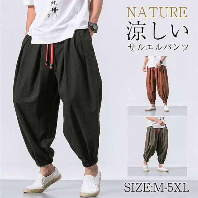 サルエルパンツ メンズ 綿麻 ズボン 長ズボン 綿麻パンツ リネン 薄手 イージーパンツ ワイドパンツ ルームウェア 部屋着 アンクルパンツ ウェストゴム ワイドパンツ 九分丈 チノパン 涼しい バギーパンツ エスニック テーパードパンツ テー カジュアル 大きいサイズ