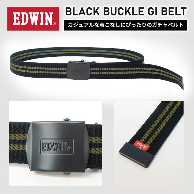 エドウイン 22269269 EDWIN ベルト 0101297 ブラックバックル 黒バックル GIベルト ガチャベルト メンズ レディース 黒 ベージュ カーキ ネイビー