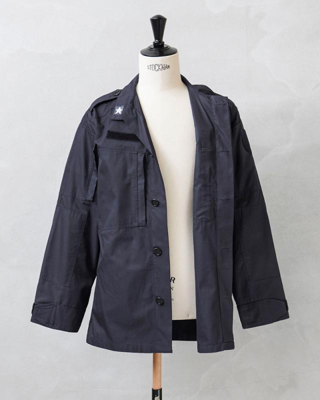 | 商品説明 | 実物 USED イタリア軍 M.M. NAVY リップストップ オペレーショナル ジャケットのご紹介です。 イタリア海軍「Marina Militare Italiana」によって開発されたジャケットです。船上活動において日々着用されているジャケットで、兵士が最も長い時間着用しているアイテムです。ハリのある上質なリップストップコットンが使用されたジャケットで、引き裂きに強く、耐久性の高い素材が使用されています。 ベルクロ留めのスタンドカラーで、襟を立てていない場合も「ミリタリースター」と呼ばれるイタリア軍のアイテムに見られる装飾が見える仕様になっています。比翼仕立てのフロントはボタンで開閉、胸にはジッパー開閉のポケットが2つ、袖の左右にもジッパー付きユーティリティポケットが付属しています。 肩から背面にかけた立体的なアクションプリーツが腕まわりの可動域を広めて動きをスムーズにするこだわりのディテール。サイドのパネル切り替えが入れられることで立体的で動きやすいデザインが施されています。袖口はベルクロで調節可能で、広めの袖口がロールアップもしやすく、肘部分は二重に補強されています。 イタリアらしく質感と美しいシルエットにもこだわりを感じるリップストップジャケットです! | |||||||||||||||||||||||||||||||||||