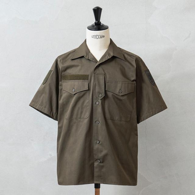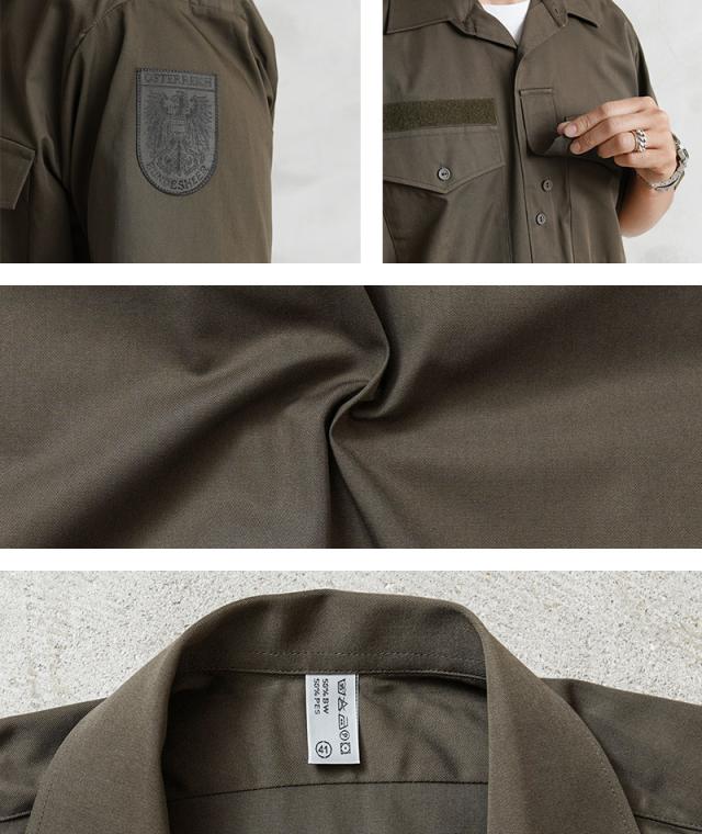 | 商品説明 | 実物 新品 デッドストック オーストリア軍 ショートスリーブ コンバットシャツのご紹介です。 オーストリア軍から放出された2000年代の半袖コンバットシャツが入荷しました。 ミリタリーテイストを感じさせる要素が多く盛り込まれているデザインで、ボタン開閉の2箇所のフラップポケットのフロント中央には階級章などを取り付けるためのループが備わっています。 右胸ポケット上部や袖にはワッペンやネームパッチを取り付けるためのベルクロが備わっており、左袖にはオーストリア連邦軍を意味する表記と、オーストリアの国章である鷲が描かれたパッチが取り付けられています。鷲の両足につながっている切れた鉄の鎖は、ナチス・ドイツからの解放を示しており、第2次世界大戦後に付け加えられました。 さらっと肌触りの良い通気性の良いコットンポリ素材で、裾はスクエアテールでシャツを出したスタイルが様になります。オーストリア軍独特のオリーブとブラウンの混ざったような独特のカラーが味わい深く、落ち着いた印象を与えてくれます。ミリタリーシャツでは珍しい半袖シャツで暖かい時期に大活躍する一押しアイテムです! | ||||||||||||||||||||||||||||||||||||||||||||||||||||||||||||