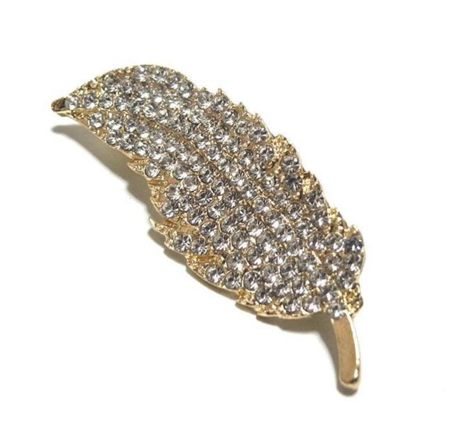ブローチ 羽根 羽 フェザー ラインストーン ゴールド