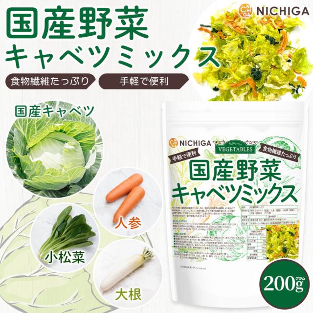 国産野菜キャベツミックス 200g 【メール便専用品】【送料無料】 食物繊維たっぷり[キャベツ 人参 小松菜 大根] 手軽で便利 契約農家栽培 味噌汁の具 [01] NICHIGA(ニチガ)