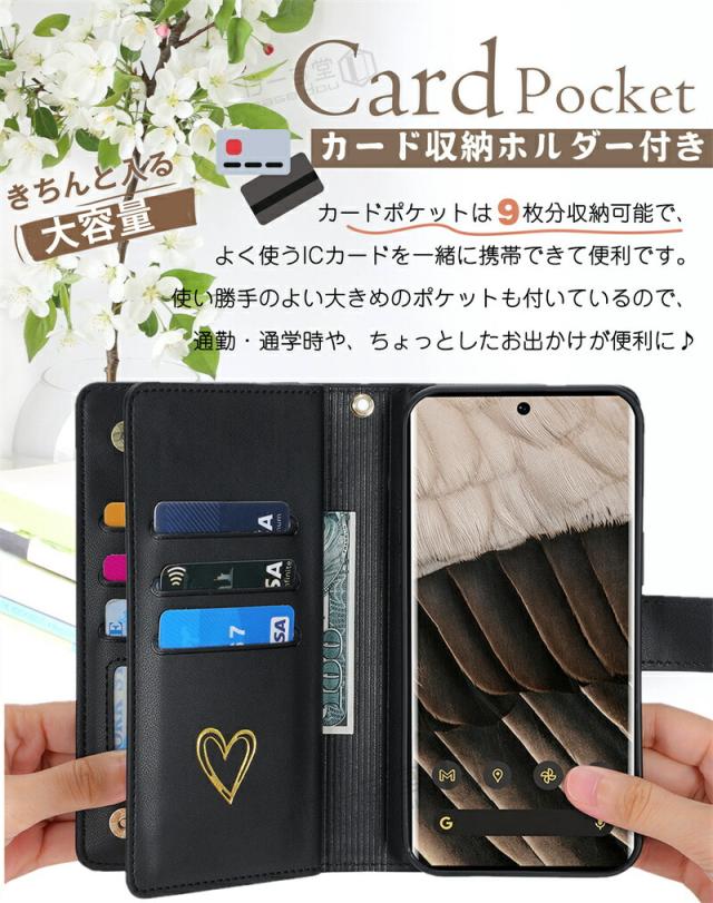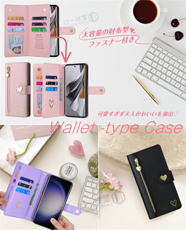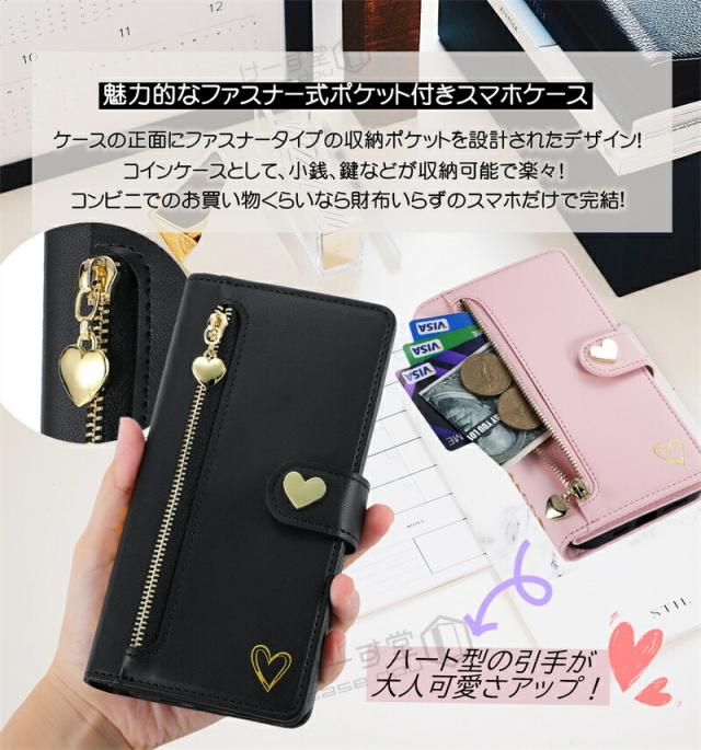 キュートなハートモチーフデザインの中にも高機能さを併せ持つ 手帳型ケース です。