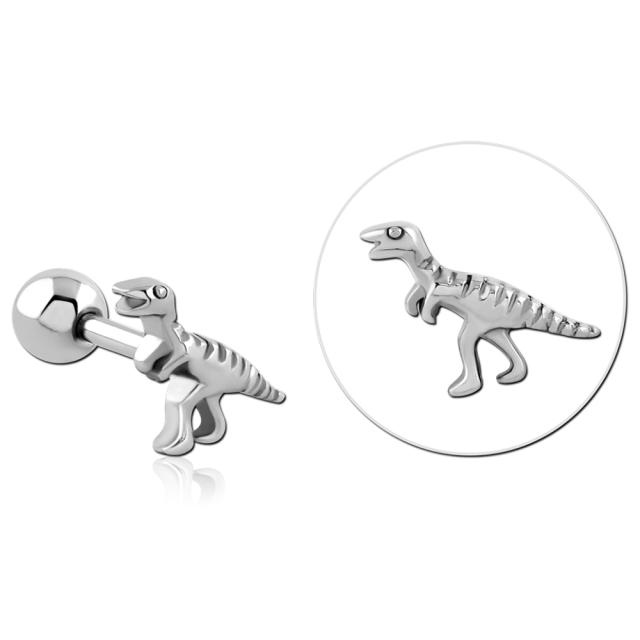 二足歩行の肉食恐竜をデザインした16ゲージのストレートバーベル型ボディピアス。男性からも女性からも人気の怪獣モチーフのボディーピアス。