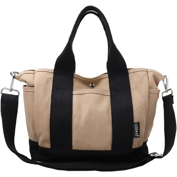トートバッグ レディース ショルダーバッグ グレーベージュ/ブラック パーテーション バッグ キャンバス 仕切り 大容量 LIZDAYS リズデイズ 2WAY
