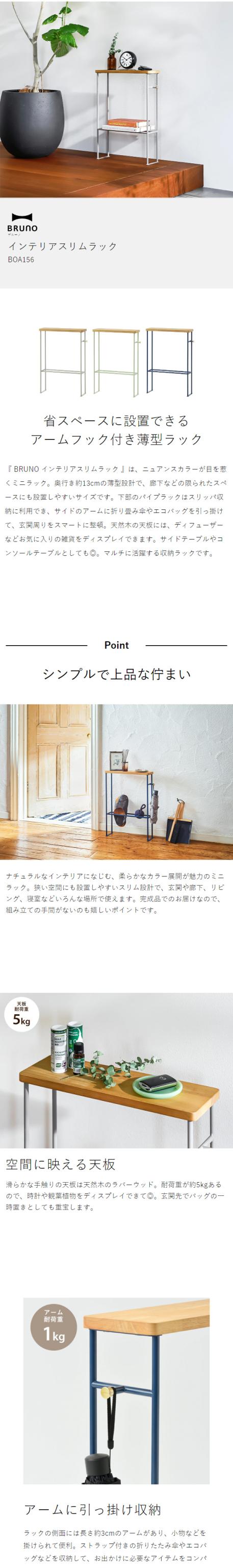 [ BRUNO インテリア スリムラック ]BRUNO ブルーノ スリム 壁面 収納 ラック 小物収納 玄関テーブル テーブル 玄関 玄関収納 傘 フック 棚 薄型 壁 コンパクト 天板 スタンド 木製 台 北欧 グレージュ グリーン ネイビー BOA156【送料無料】