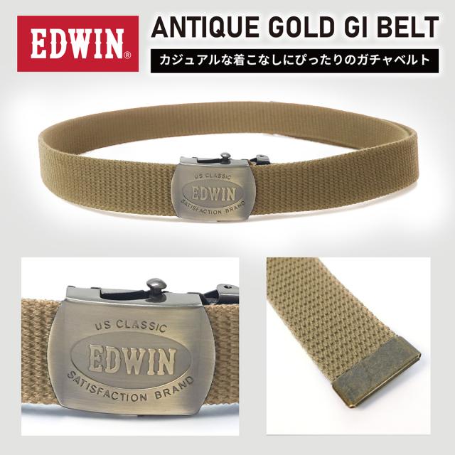 エドウイン 22269272 EDWIN ベルト 0101299 アンティークゴールドバックル GIベルト ガチャベルト メンズ レディース 黒 ベージュ カーキ ネイビー