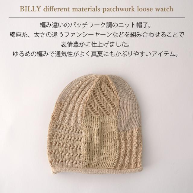 レディース メンズ オールシーズン 春 夏 春夏 春用 夏用 帽子 ニット帽 ニットキャップ サマーニット帽 サマーニットキャップ ビーニー ワッチキャップ おしゃれ 室内 外出 男性 女性 夏の帽子 SENSE OF GRACE | BILLY 異素材 パッチワーク ルーズ ワッチ ls-bil