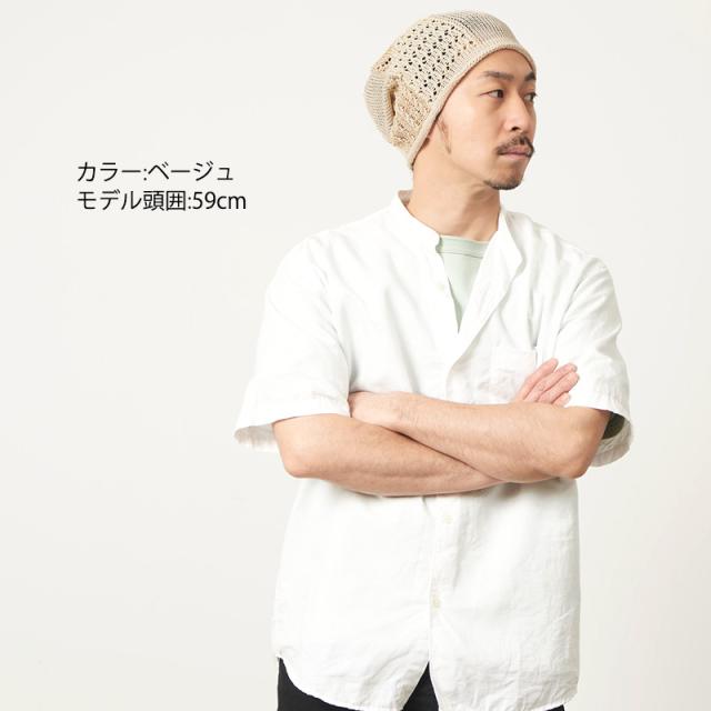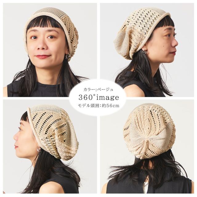 ゆるめの編みで通気性がよく真夏にもかぶりやすいアイテム。