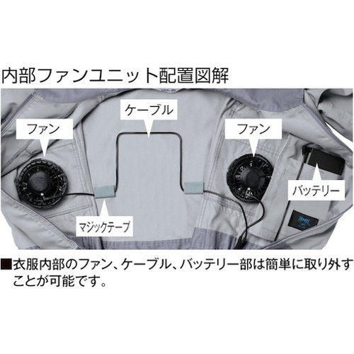 ●両脇にファンを配置、暑さ対策空調つなぎ服