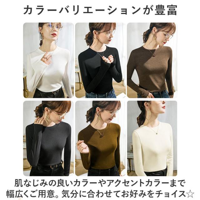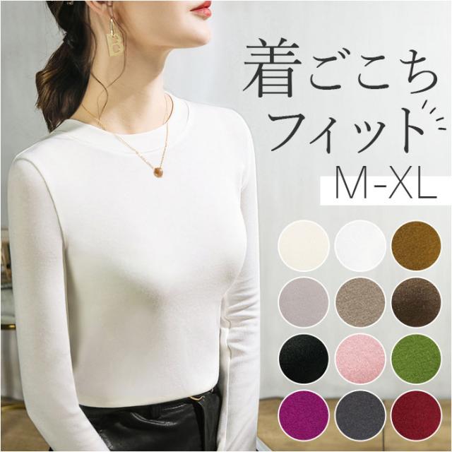 ラウンドネック tシャツ 通販 カットソー トップス ロングTシャツ プルオーバー インナーウェア 長袖 ながそで 長袖シャツ 重ね着 シャツ スタイリッシュ 無地 ルームウェア 通勤