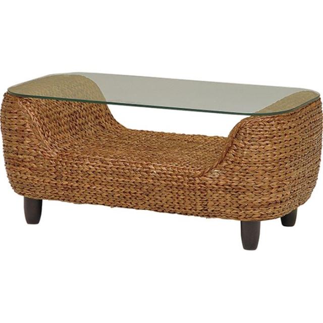センターテーブル ガラス 通販 RL-1010BR-T ローズマリーシリーズ ローテーブル ガラステーブル 強化ガラス テーブル おしゃれ ウォーターヒヤシンス 編み込み 幅100×奥行50×高さ42cm シンプル アジアンテイスト リゾート 家具 インテリア