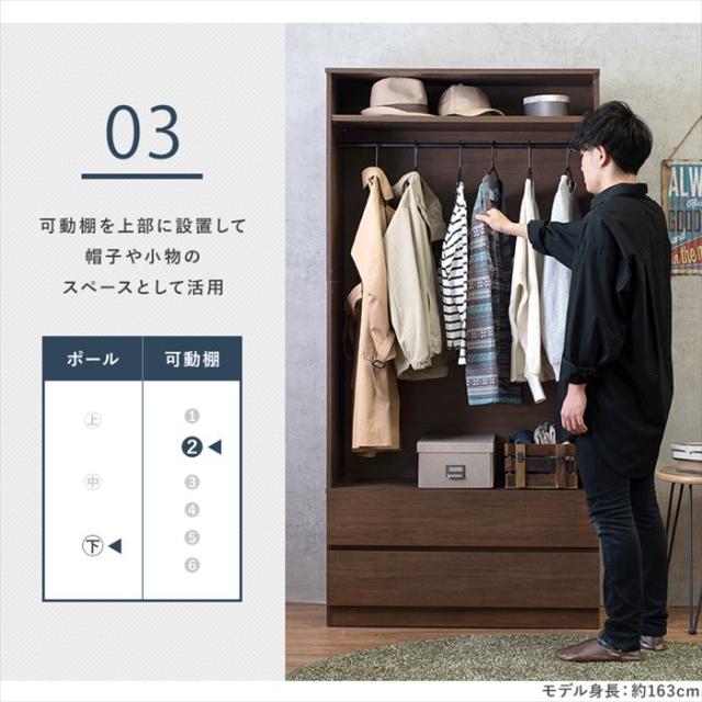 ワードローブクローゼット 通販 RKK-1622 ハンガーラック 頑丈 ハンガー ラック 引き出し付き 洋服掛けラック ハンガー掛け コートハンガー 棚付き チェスト 幅89 奥行き39.5 高さ181 ワイド 収納家具 家具 インテリア