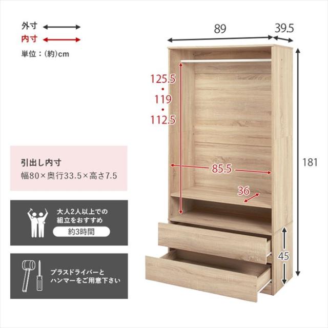 | サイズ | (約)幅89×奥行39.5×高さ181cm |