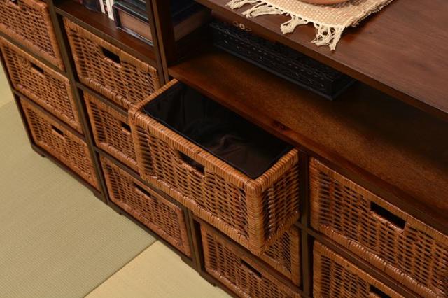 ランドリーチェスト 通販 RN-1101 ランドリー収納 ランドリー チェスト サニタリーチェスト 洗面所 収納 籐かご バスケット 1段 × 2列 木製 天然木 マホガニー 籐 ラタン 引き出し 脱衣所 収納家具 家具 インテリア