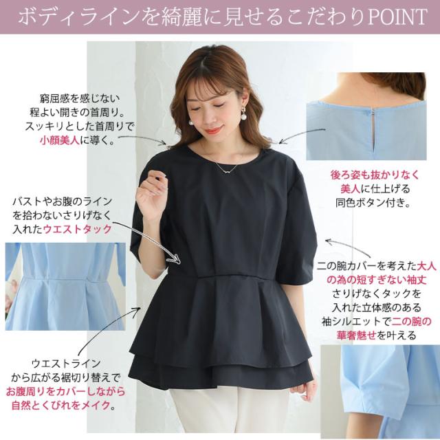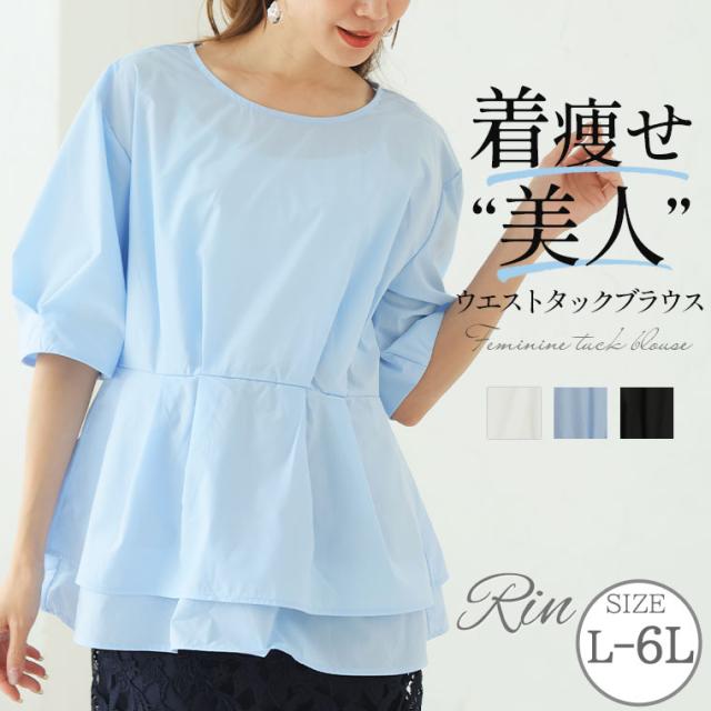 新作 大きいサイズ レディース ブラウス | Rin 着やせ美人な ウエストタック ブラウスチュニック オフィス 大人 着やせ 体型カバー ビジネス 通勤 ママ [861185] LL 3L 4L 5L 6L