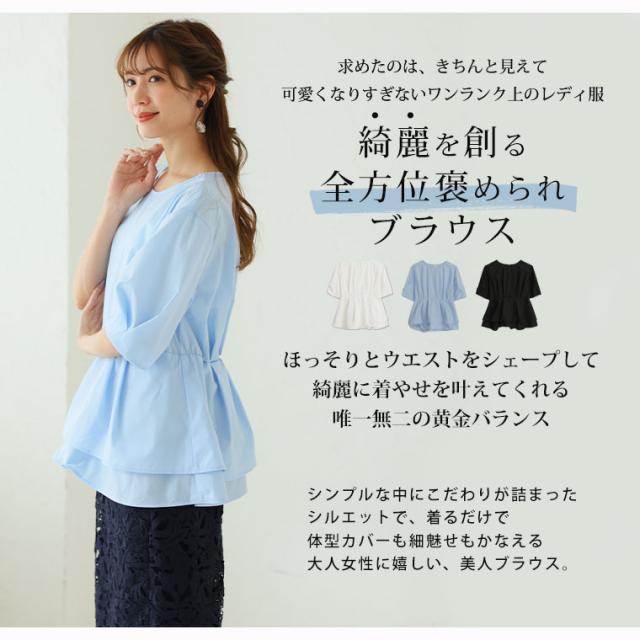 Rin スッキリ着痩せ美人なウエストタックブラウス