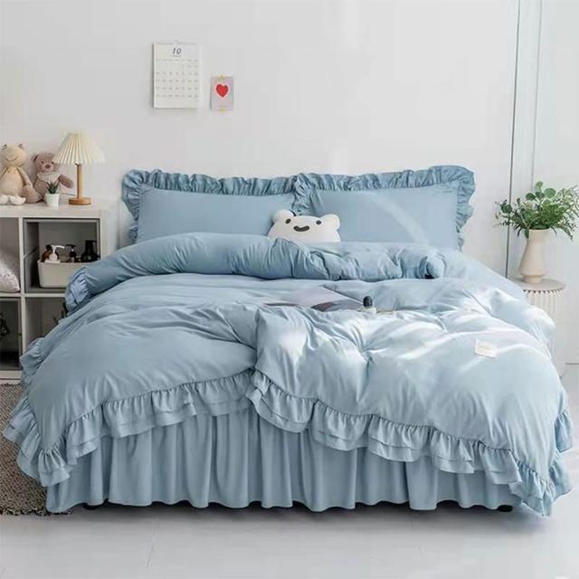 布団カバー フリル ベッドカバー 可愛い 寝具カバー 洗える 掛け布団カバー ボックスシーツ 枕カバー かわいい 布団かばー アイボリー 洋