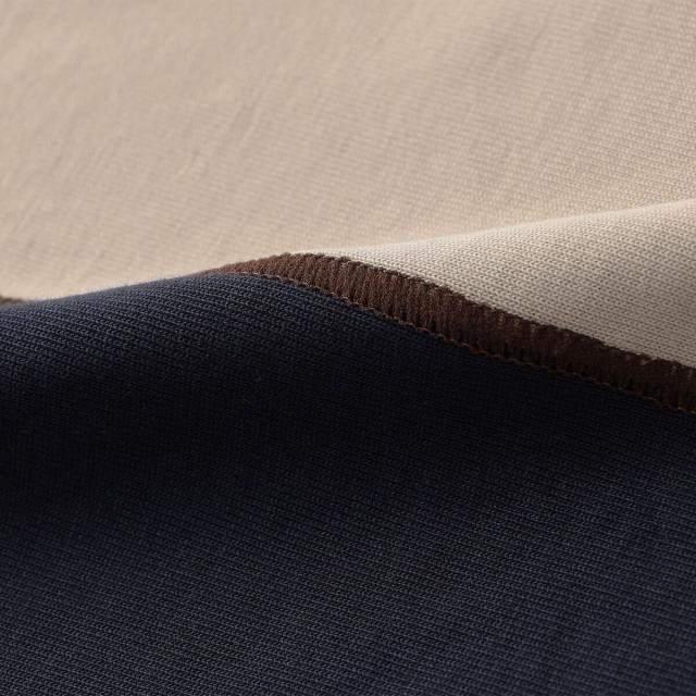 上質なハイゲージ天竺を大胆にパネル切り返ししたデザイン。