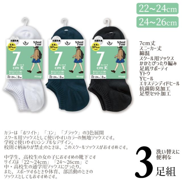 スクールソックス アツギ new スクールタイム 7cm丈 LP70083 LP70183 3足組 子供靴下 学生靴下 キッズ ジュニア 学校 無地 サポート付き 白 紺 黒 アツギ ソックス 女児 女の子 くるぶしソックス スニーカーソックス スニーカー丈 抗菌防臭 atsugi(06135)
