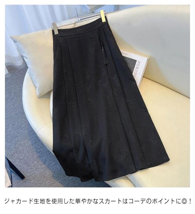 タックスカート レディース ジャガード織り チャイナ風 スカート ロングスカート 花柄 ロングスカート ウェストゴム ミモレスカート 送料無料 Aラインスカート フリンジ タッセル 可愛い