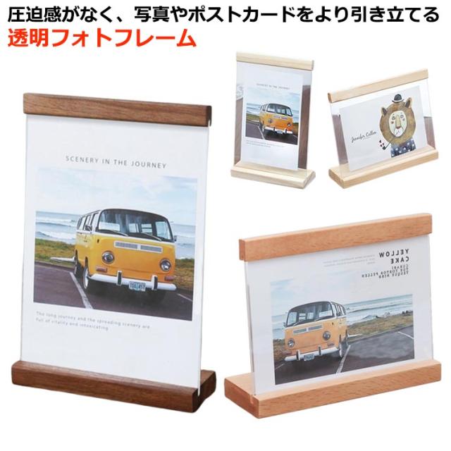 写真立て フォトフレーム 横型 アクリルフォトフレーム ポストカード 木製 北欧 A5 クリア ハガキサイズ フレーム 2L判 L判 木製 ディスプレイ 縦型 フォトフレーム 両面 卓上 木製フレーム 写真スタンド ディスプレイスタンド アクリル