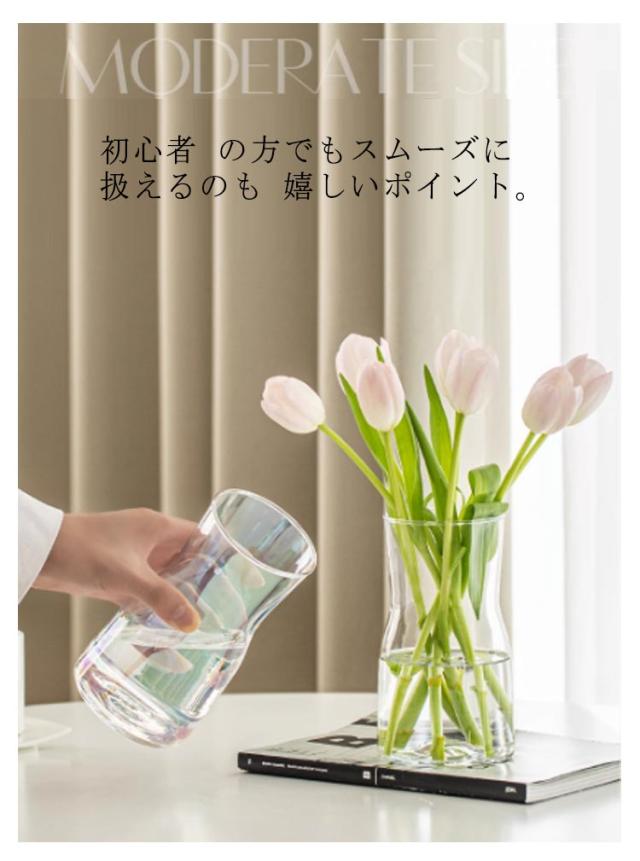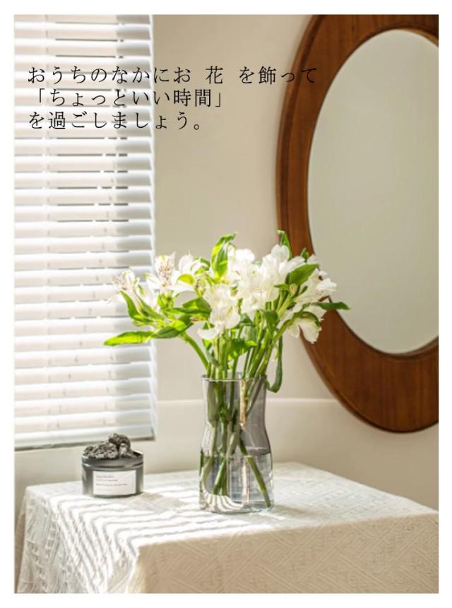 | 仕事や家事に追われがちな忙しい毎日。 おうちのなかで過ごしているときこそ 癒やし の時間はとっても大切。 シンプル な フラワーベース なら 季節の 花 や グリーン をサッと飾りやすく 暮らしの中に彩りを添えられます。 ひまわり や チューリップ 、 紫陽花 などの 季節のお 花 はもちろん ドウダンツツジ や コットンフラワー などの 枝物 まで幅広く使えます。 さらにお手入れしやすく 安定感 のあるカタチなので 初心者 の方でもスムーズに扱えるのも 嬉しいポイント。 おうちのなかにお 花 を飾って 「ちょっといい時間」を過ごしましょう。 | |