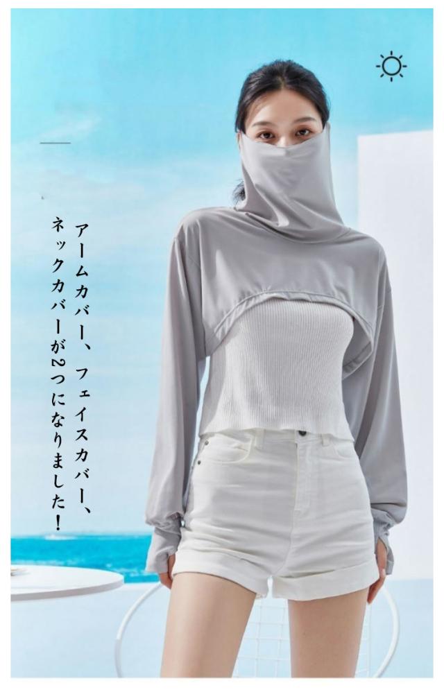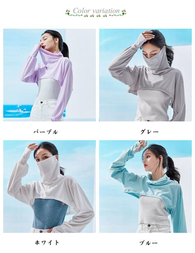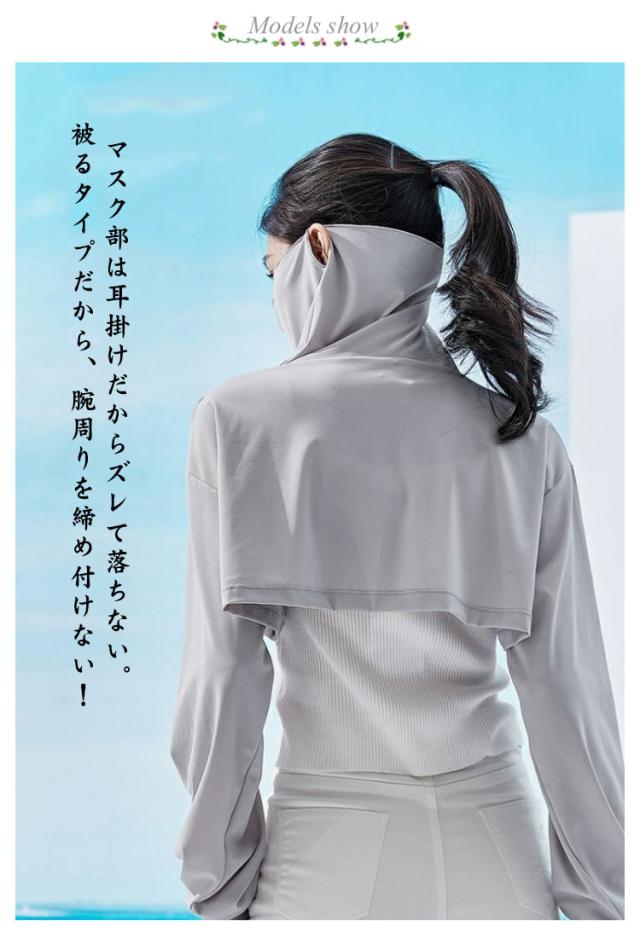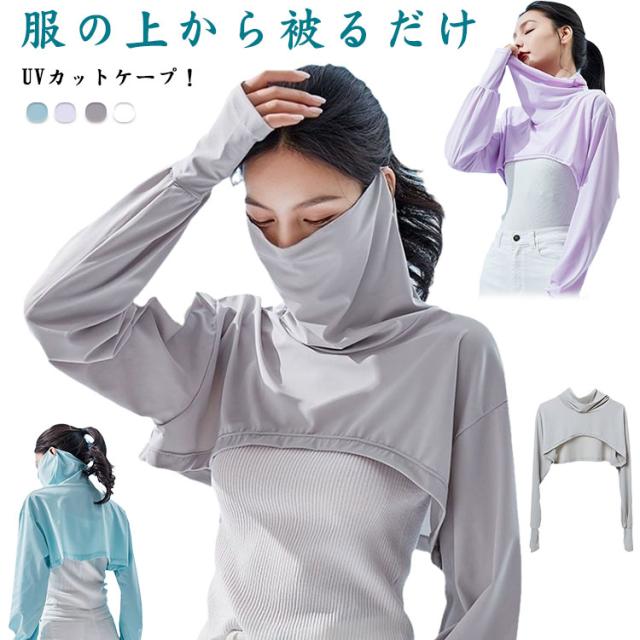 フェイスカバー レディース ケープ 肩掛け アームカバー UVケア UVカット 日よけ 自転車 紫外線防止 柔らかい 涼感 紫外線カット 冷感 涼しい ゴルフ ドライブ スポーツ 自転車 大人 長袖 無地 シンプル カジュアル パープル グレー ホワイト ブルー 送料無料