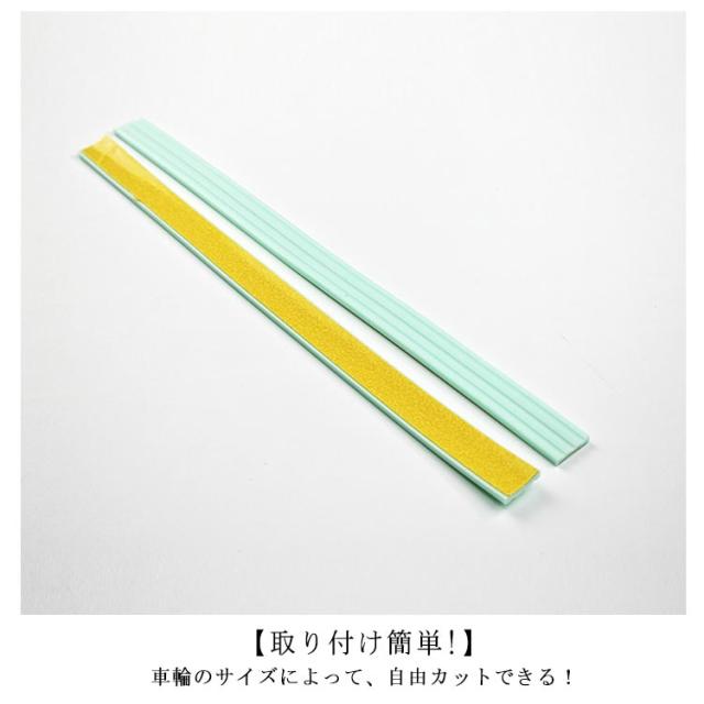 | サイズについての説明 | ※商品のサイズは手作業で測定させて頂いておりますので、若干の誤差があります。 ※一本あたり約直径6CMの車輪にびったりフィットします。 |