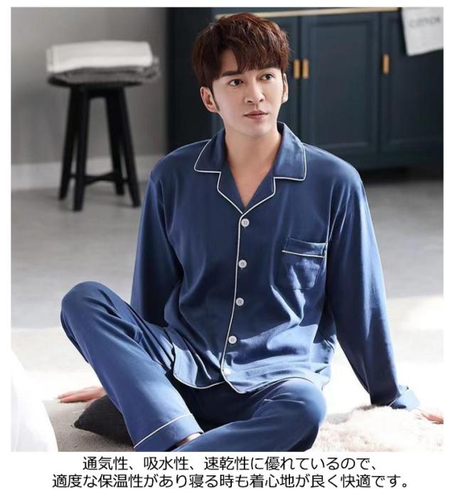 メンズ ルームウェア 部屋着 無地 薄手 長袖 パジャマ 冬 紳士用 お洒落 寝巻 長ズボン 入院 秋 前開き 可愛い スムース 上下セット おしゃれ 春 セットアップ ボタン 吸汗 通気 肌に優しい 大人 夏入院 介護 プレゼント 敬老の日 ナイトウェア