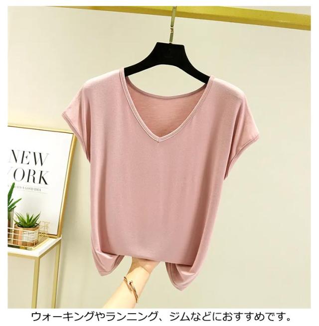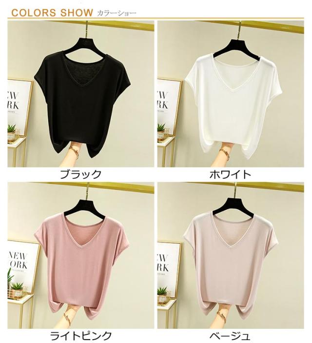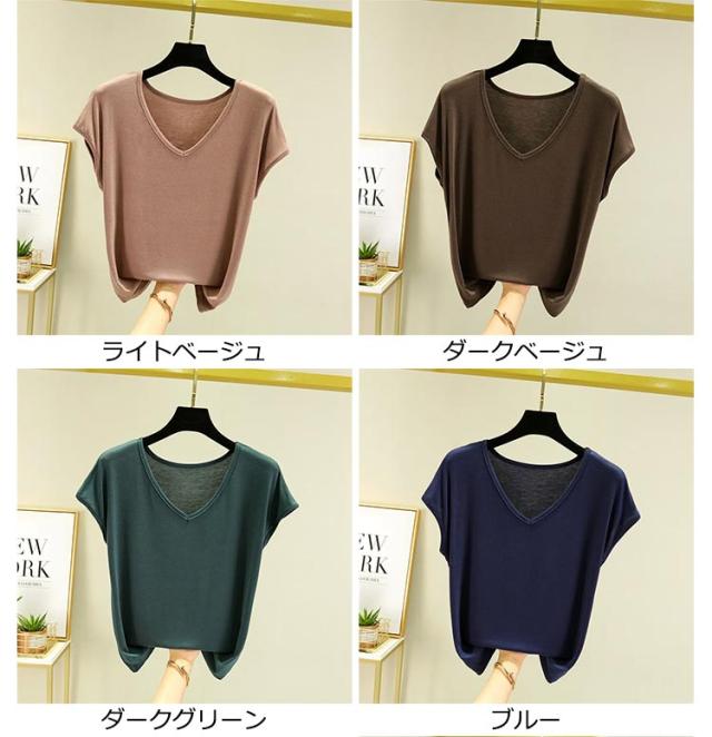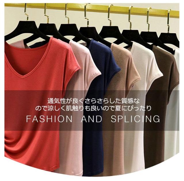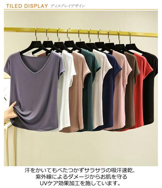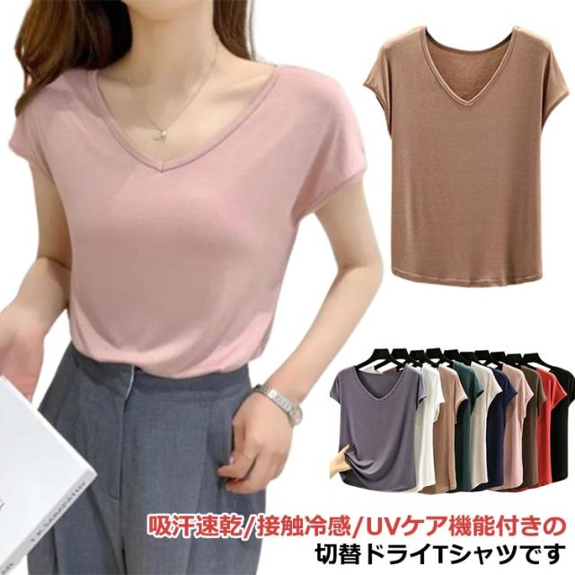 吸水速乾 半袖Tシャツ リラックス 接触冷感 半袖 汗染み防止 シルエットTシャツ Vネック 冷感Tシャツ カットソー 大きいサイズ 大人 インナー 暑さ対策 UVカット トップス 上品 速乾Tシャツ 体型カバー ひんやり 夏 レディース