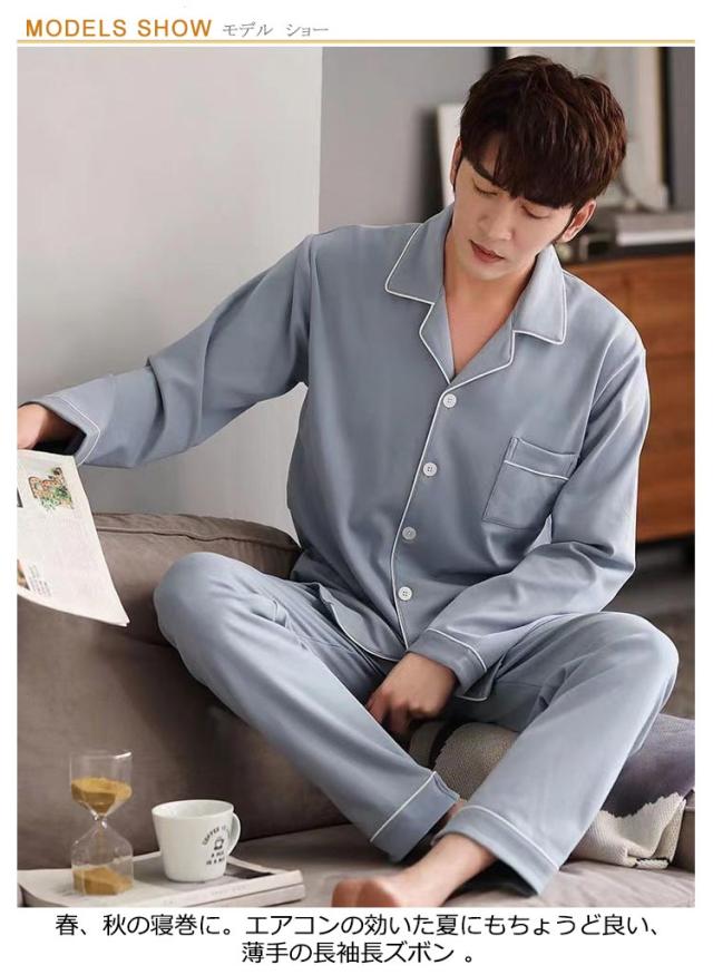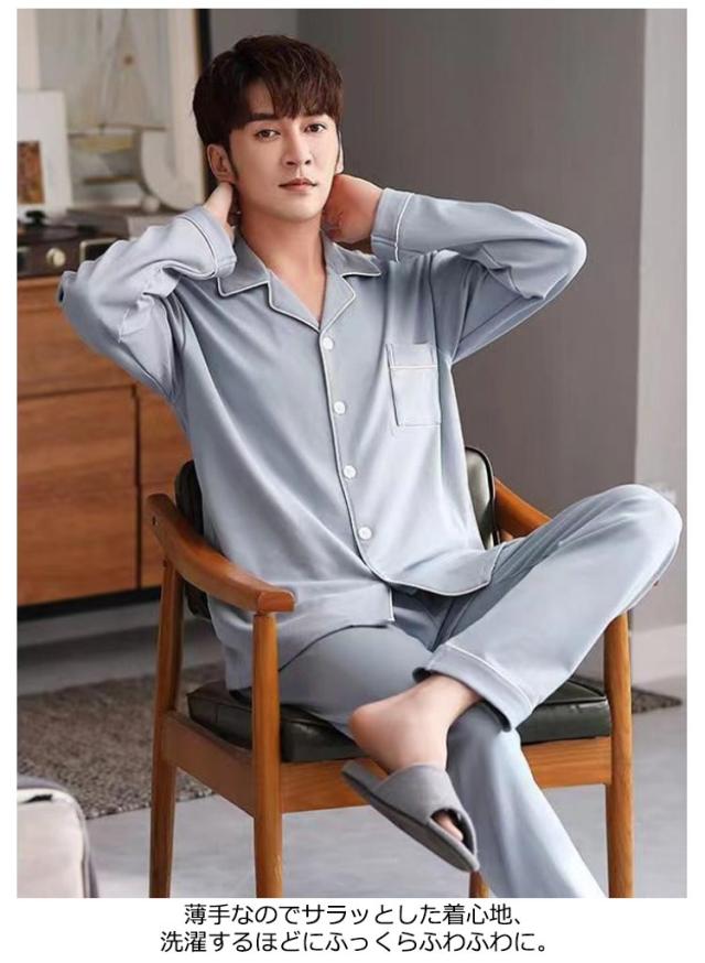 入院 部屋着 夏入院 長ズボン 春 ナイトウェア メンズ ルームウェア 前開き 薄手 冬 パジャマ 上下セット 長袖 無地 可愛い スムース 通気 紳士用 介護 セットアップ ボタン 吸汗 寝巻 肌に優しい 大人 おしゃれ パジャマ プレゼント 敬老の日 お洒落