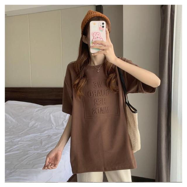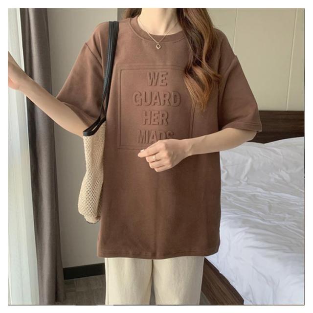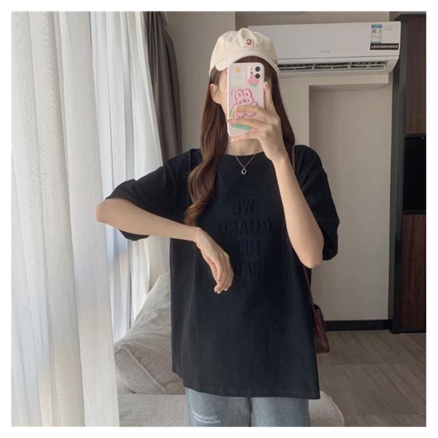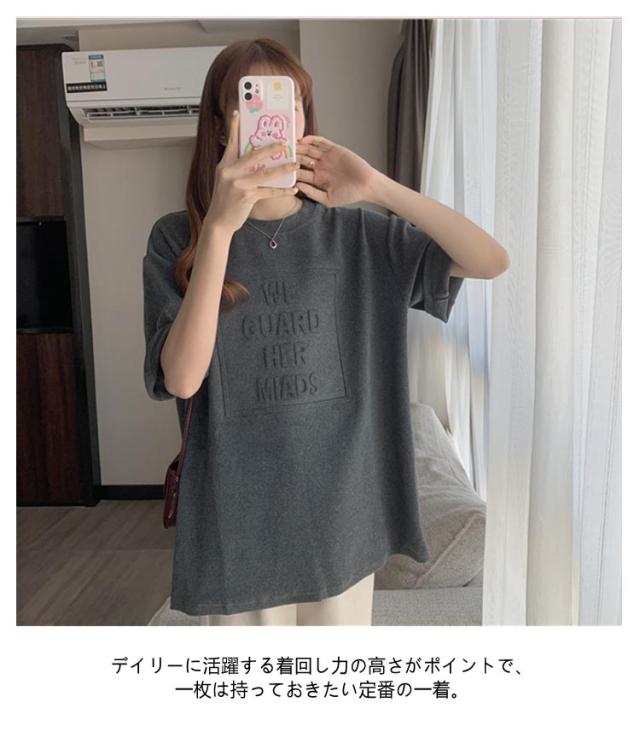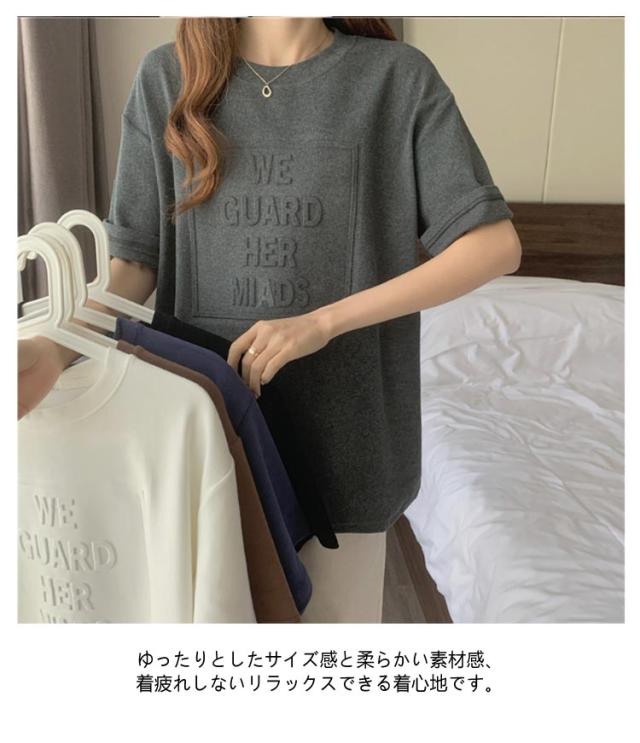 半袖 ティーシャツ ロゴ 英字 カットソー Tシャツ 立体 3D おしゃれ デコボコ Tシャツ プリントTシャツ クルーネック 重ね着 リラックス トップス プルオーバー 春夏 おしゃれ 体型カバー カジュアル 通勤 韓国ファッション 春夏