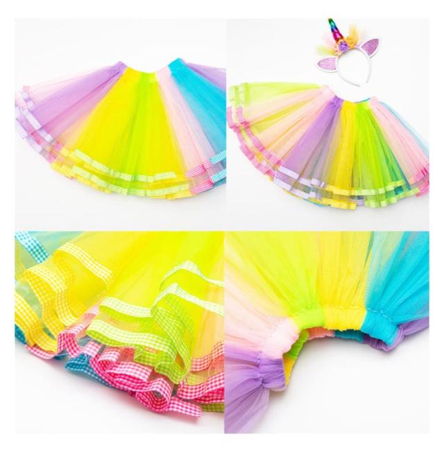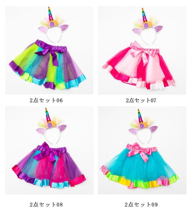 ダンス 2点セット カラフル キッズ キッズ スカート ダンス 衣装 パニエ チュチュ キッズダンス衣装 ダンス衣装 舞台 スカート チュチュ ヘアバンドセット レインボー色 チュチュスカートカラフル ふんわり 超ふんわり