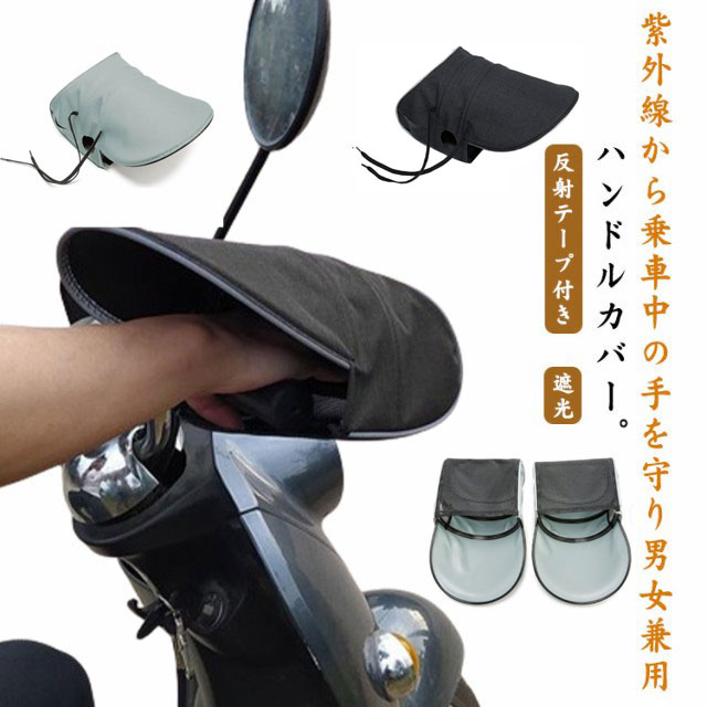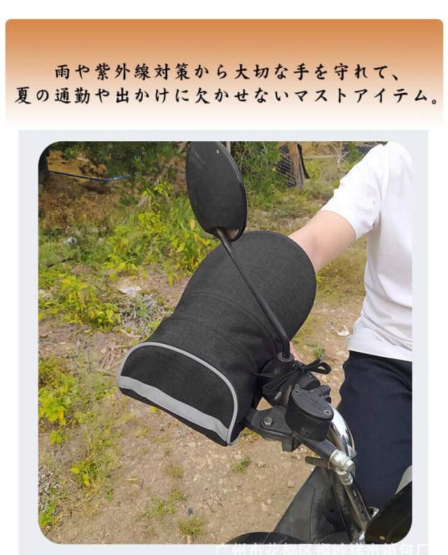 ハンドルカバー バイク用 防水 サマーハンドルカバー バイクグローブ バイク用ハンドルカバー UVカット 電動自転車 通気 反射テープ付き 自転車 通気性 紫外線対策 日焼け止め 夏 男女兼用 遮光 通勤 通学 無地 シンプル 簡単装着 3D立体構造 日よけ グレー ブラック バイク