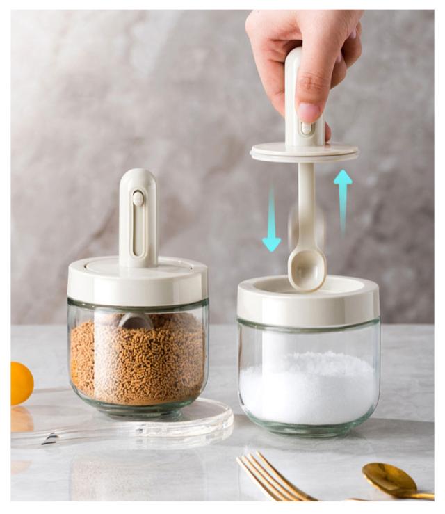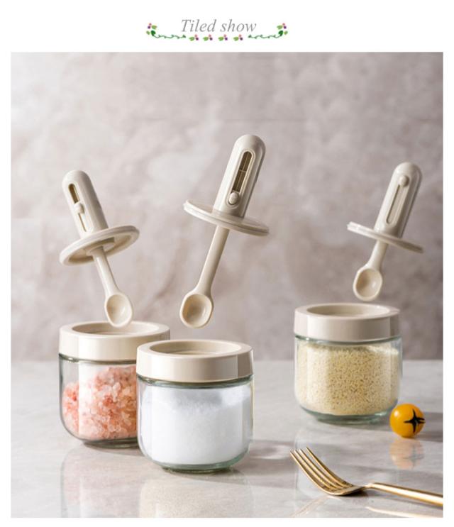 保存 調味料 使いやすい 保存容器 長さ調節可能のスプーン付き 砂糖入れ 使いやすい 調味料ポット 調味料ケース 塩入れ 調味料缶 スプーン付き 調味料入れ 伸縮可能 密閉 一体型 スパイスボトル ガラス製 調味料ボトル 使いやすい シンプル ホワイト 透明