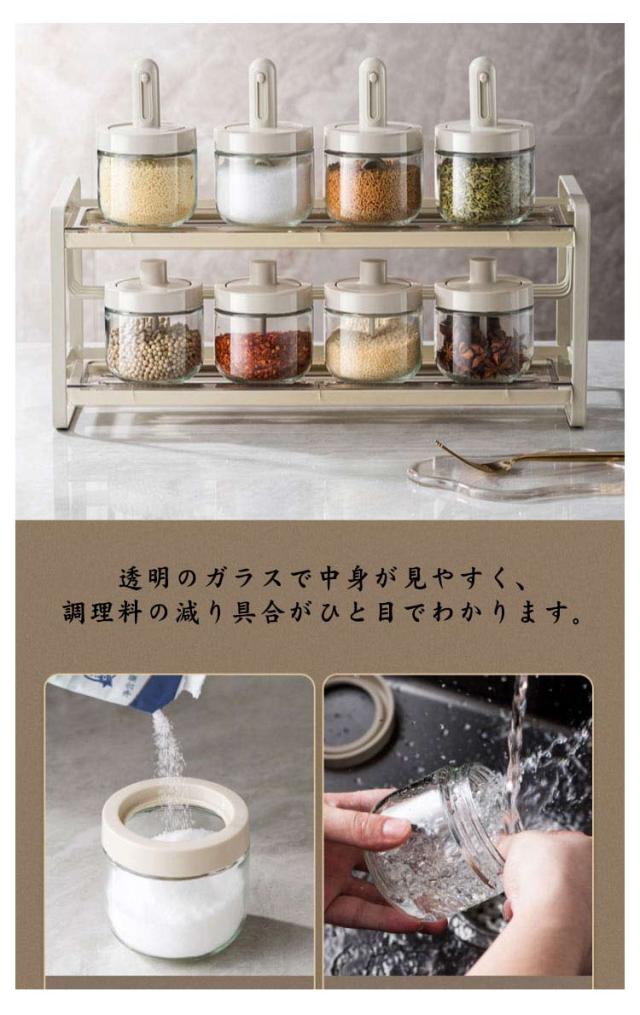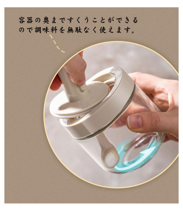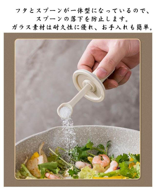 | 長さ調節可能のスプーン付きの調味料入れが登場。 容器の奥まですくうことができるので調味料を無駄なく使えます。 パッキンでしっかり閉まって湿気を防ぎ中の調味料が固まりにくい。衛生面も安心です。 フタとスプーンが一体型になっているので、スプーンの落下を防止します。 ガラス素材は耐久性に優れ、お手入れも簡単。 透明のガラスで中身が見やすく、調理料の減り具合がひと目でわかります。 | |