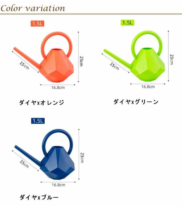 | 北欧雑貨をイメージしたおしゃれなカラーリングのジョーロです♪ ダイヤモンド&丸形の2タイプ、容量1.2リットルのじょうろです。 ストレートタイプの注ぎ口で室内での水やりやピンポイントで水やりしたいときに便利です。 水やり作業はもちろん、ガーデンオーナメントとしてもおすすめです。 ガーデニングを楽しくおしゃれに演出します。 | |