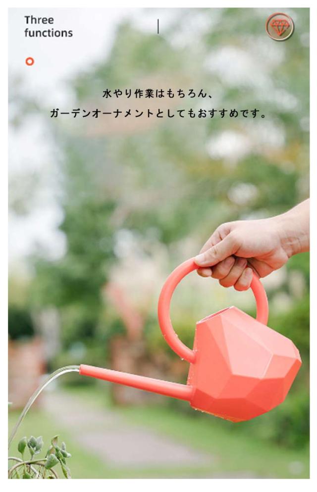 | 北欧雑貨をイメージしたおしゃれなカラーリングのジョーロです♪ ダイヤモンド&丸形の2タイプ、容量1.2リットルのじょうろです。 ストレートタイプの注ぎ口で室内での水やりやピンポイントで水やりしたいときに便利です。 水やり作業はもちろん、ガーデンオーナメントとしてもおすすめです。 ガーデニングを楽しくおしゃれに演出します。 | |